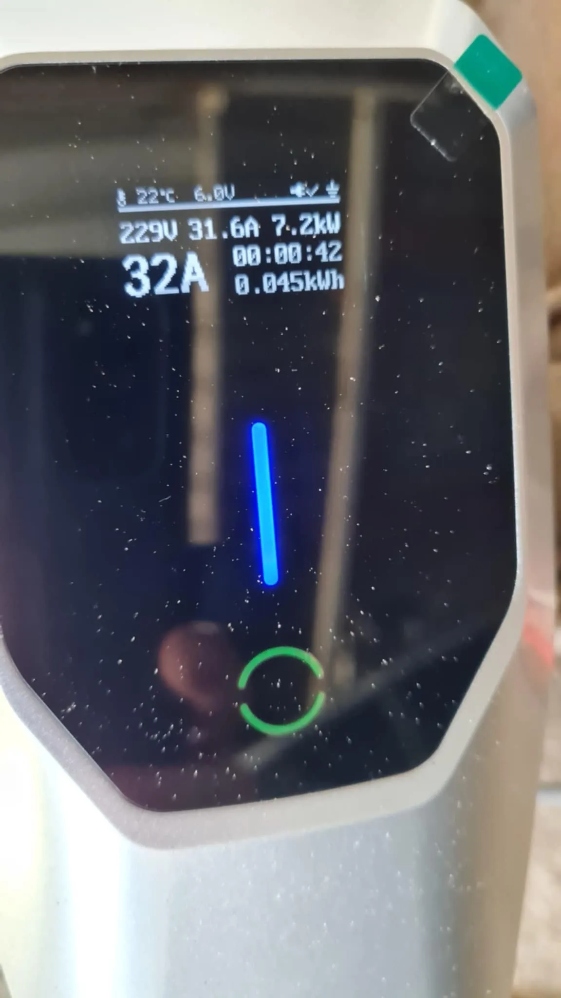 Dispositivo comprado para usar como carregador portátil para o Marrocos. Forneça uma tomada de energia de 32A. e fez uma transição de 32cee para shuko. Primeira vez usada e carregada às 16h; o carro passou de 1% para 83% de carga em 12 horas. Em resumo: uma solução ideal para levar consigo. As unidades residenciais consomem apenas 20A. Então, ainda não posso verificar a velocidade de carregamento do carregador a 32A.
